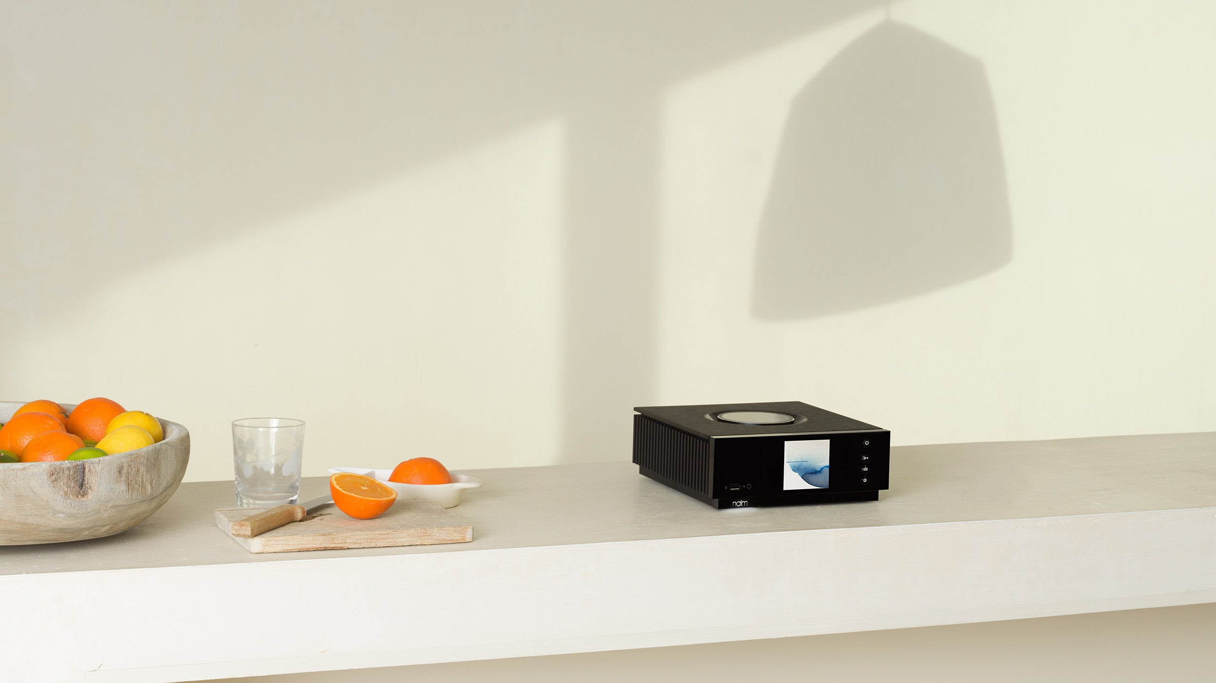 On the Uniti Atom, you'll find the large top-mounted volume control that's intuitive to use, and a sharp, detailed, informative display that makes using all of Atom's myriad features a breeze.